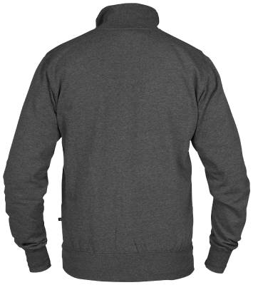 City-cardigan med attitude og stilrent design med høj krave, kraftige ribkanter, sidelommer med lynlås.