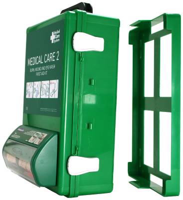 A fully equipped and portable dust-, moisture- and dirt-proof First Aid Station for anyone working in occupations at risk of eye injuries, burns and wounds.