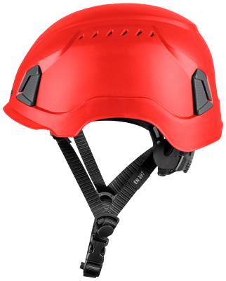• Clearly colour coded for each standard: black buckle and label for EN 397, red buckle and label for EN 12492.