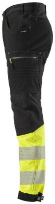 Certified hi-vis service trousers in stretch fabric. Cordura stretch panels at the seat, front, crotch, leg pockets, back of knee and ankles for extra durability. Slim-fit trousers in a modern style, designed to provide optimal comfort throughout the working day.