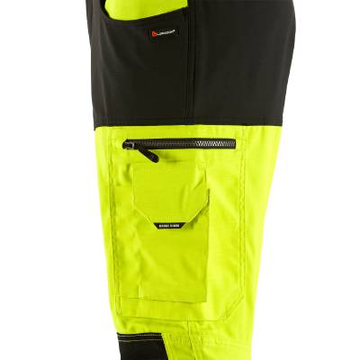 Flexible, Class 2 hi-vis-certified service trousers in hardwearing water- and dirt-repellent main fabric. Several 4-way stretch panels for increased mobility and comfort. Developed in close collaboration with users, these trousers have been equipped with a number of functional pockets to provide you with optimal conditions for your working day.
