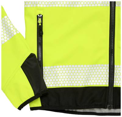 Flexible certified Hi-Vis softshell jacket in stretch fabric. The perfect all-round jacket: windproof, water-resistant and extra warmth.