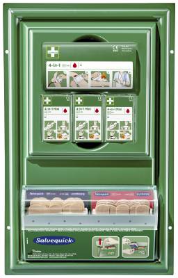- Plastic wall-board for wall-mounting, with the most necessary items for wound care and First Aid.
