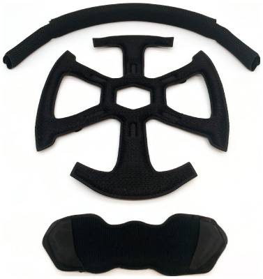 Washable crown, forehead and neck padding. Easy installation using Velcro fasteners.